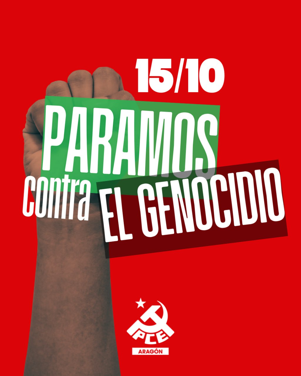 Desde el PCE en Aragón apoyamos la convocatoria de jornada de lucha de mañana 15 de octubre convocada por los principales sindicatos, llamando a participar en los paros parciales y en las movilizaciones convocadas para ese día.